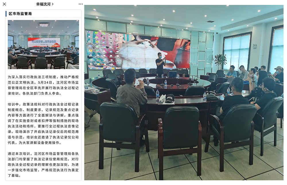 沈陽安豐電子工程有限公司參與沈陽市沈河區市場監督管理局“振興新突破、我要當先鋒”行政執法全過程記錄培訓。為參會人員深度講解執法記錄儀使用方法、規范。誠信服務社會、承擔企業責任!??!